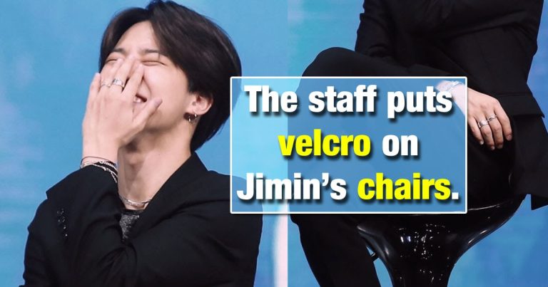 5. Pour les entretiens, le personnel met souvent du velcro sur les chaises de Jimin pour l’empêcher de tomber.