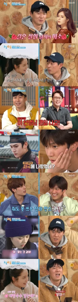 Ensuite, lorsqu’on a posé aux membres une question sur le titre officiel d’un chef masculin travaillant dans un palais de la dynastie Joseon, ils se sont appuyés sur Kim Jong-min, qui apparaissait dans une émission télévisée d’histoire. Cependant, au lieu de donner la réponse, Kim Jong Min s’est vanté de son amitié avec l’historien Sim Yong Hwan. À ce moment-là, Na In Woo a essayé de deviner en se basant sur son expérience de jouer dans un drame historique sur la cuisine. Cependant, les membres ne faisaient pas confiance à la réponse de Na In Woo, disant « Et si nous nous trompions encore ? »puis a demandé d’utiliser une chance de téléphone pour confirmer la réponse.