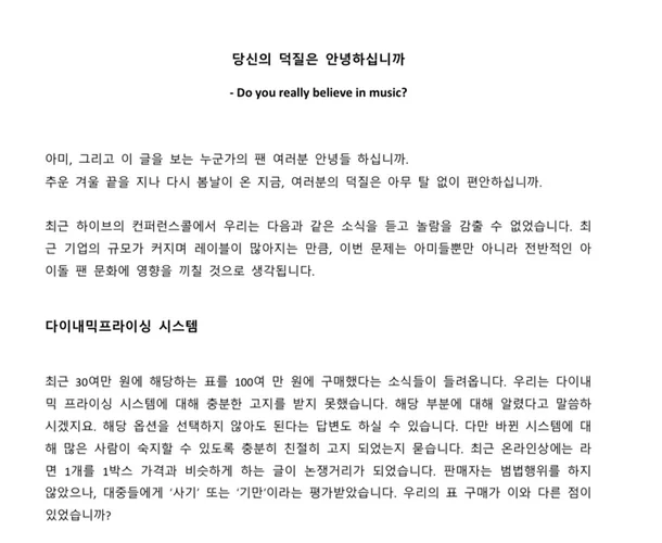 En particulier, ils pensent que ce que fait HYBE est différent de ce que le président Bang Si Hyuk a exprimé dans ses interviews précédentes, où il a déclaré: « La force motrice qui a permis à BTS d’aller aussi loin est ARMY. Nous ne pouvons pas faire un seul pas sans ARMY.«
